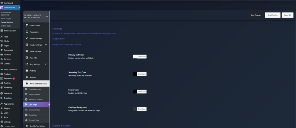 These settings control the overall color scheme of the cart page.