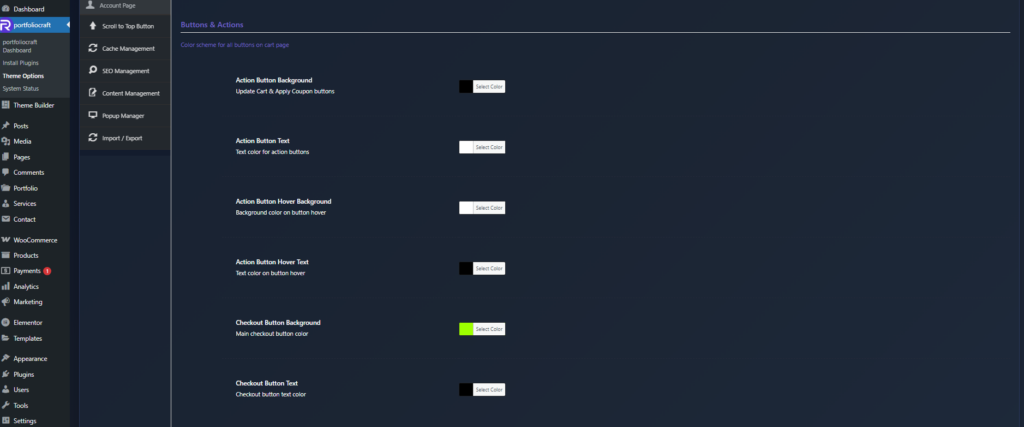 These options style all action buttons on the cart page (Update Cart, Apply Coupon, Checkout, etc.).