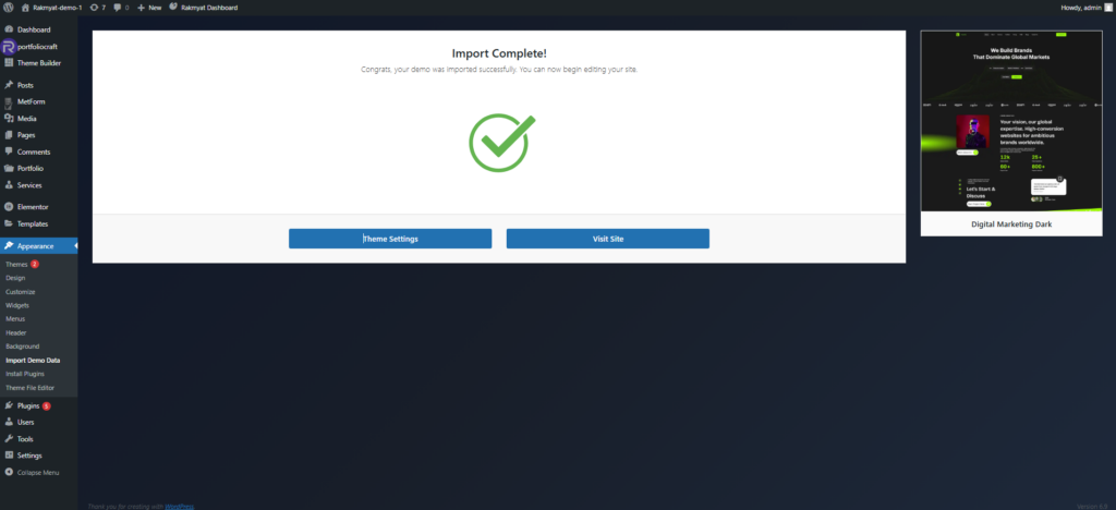 - Choose the demo you want (for example “Digital Marketing Dark”).