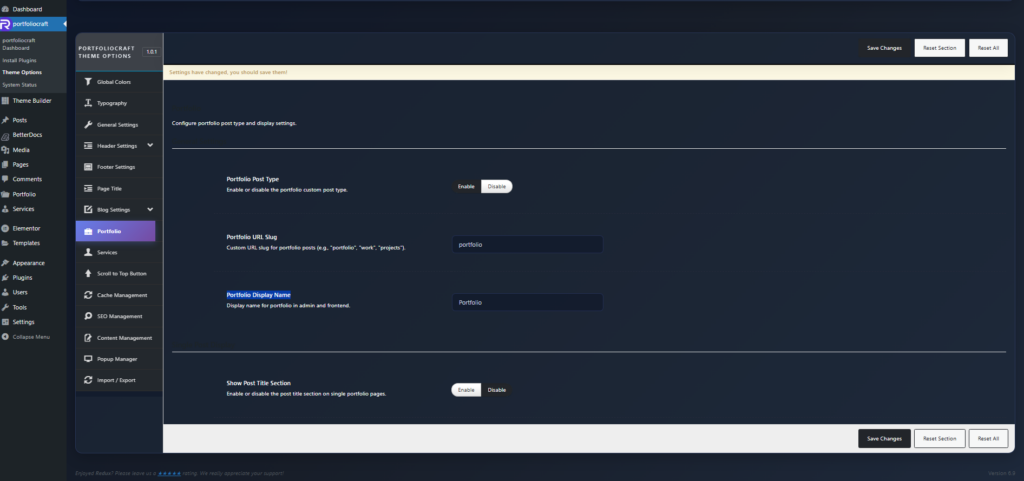 Portfolio Display Name controls how the portfolio post type is labeled in the WordPress admin and, in some cases, how it appears in frontend elements such as breadcrumbs or headings.